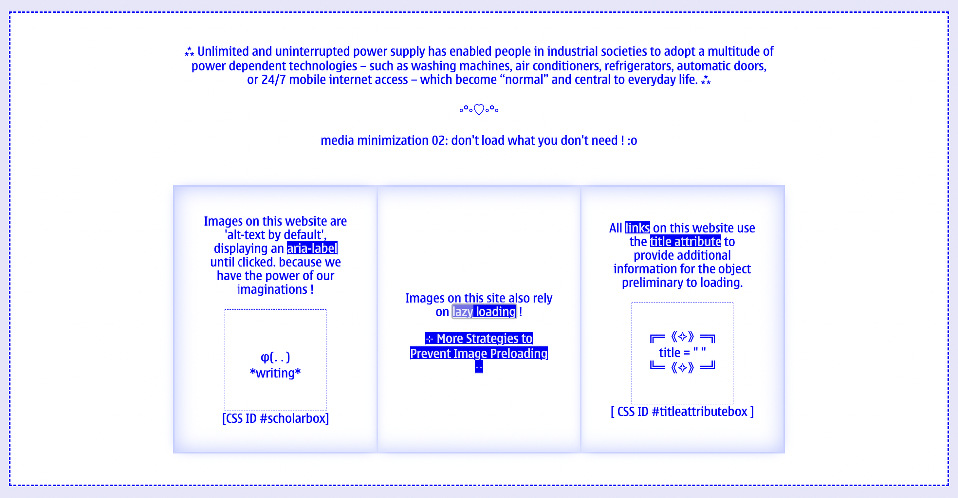 This website also featured alt-text as the default state for images that were lazy-loaded. After reading the description of the image, participants had the option to click to load it. The intention is that for all links on the webpage to have a similar data-title that describes what the link leads to and how much data it takes to load the full page. Users have the choice to proceed/load more.