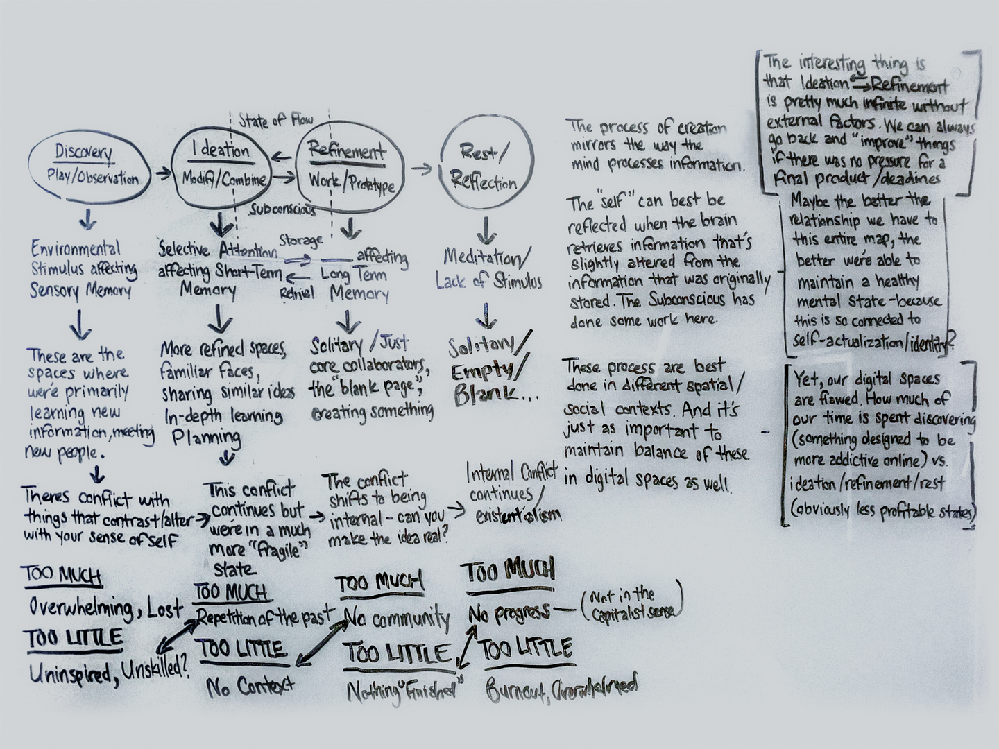 -- Finally, this whiteboard outlines some of the initial synthesis of research that would continue to outline strategy for this entire project.