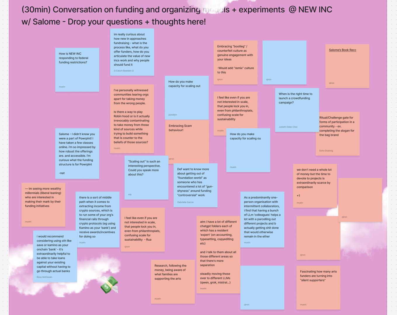 We had a guest (director of new inc, Salome) dive into the way New Inc + members' have adapted and shifted to different funding models.
