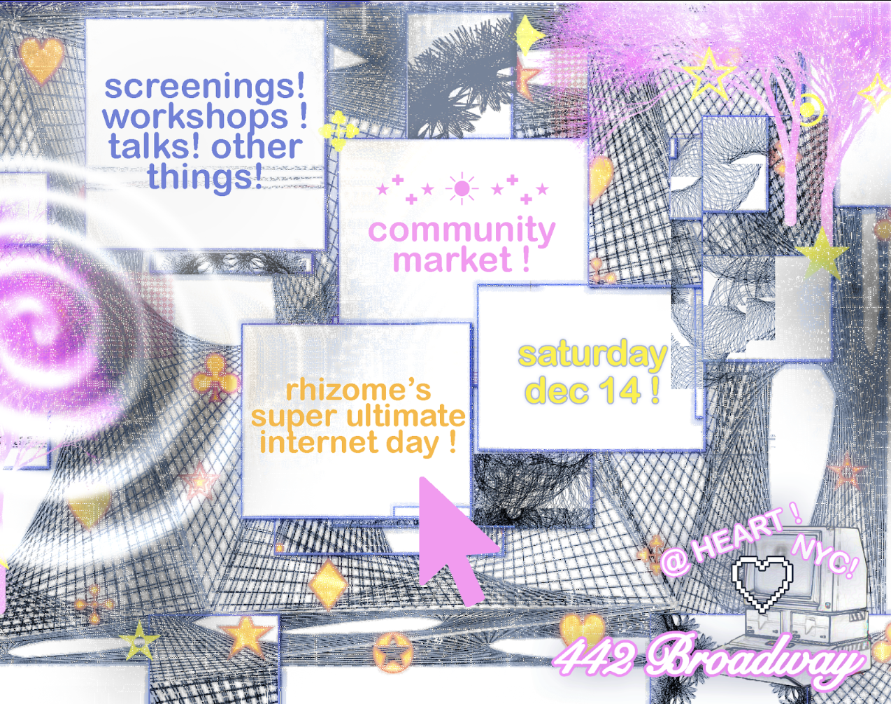 Are.na, Bella Carlos, bleu281_, Blake Andrews, boshi's place, Caldo Worldwide, Call Waitn + Cal Fish, Conspecifics, czechwun, deathbysheep, Dizzy Books, Dreamland Forever, Jackie Liu, Kaleidoscope Studios, Inpatient Press, Knit_b0dy, LARPA, maegaze, Mil Mundos Books, Molly Soda, Morry Kolman (WTTDOTM), Orange Milk Records, O-R-G small softwares, Palestine Online, Permeable Self, Random Man Editions, Ravon Ruffin Feliz, Sahiba, Spencer Chang, Toy Box Coffin, @VXPX.INFO, Yuliya Vasilyevna, and more!!