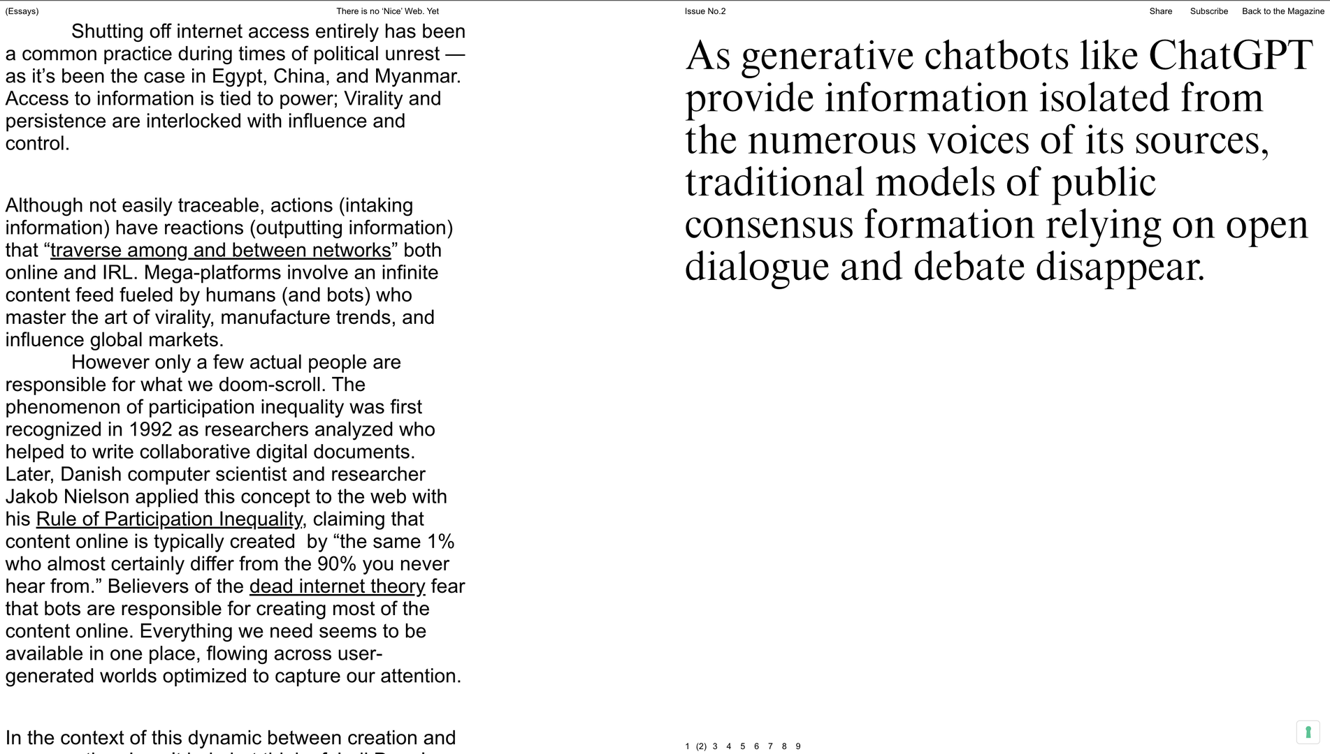 The "silent majority" of the internet may simply be "non-public participants" who, although rendered invisible by UI design choices - feel as engaged lurking in some places as they do contribute to others. Although not easily traceable, lurkers' actions (reading, learning, bearing witness, remembering) have effects that often extend beyond any one online or IRL network.