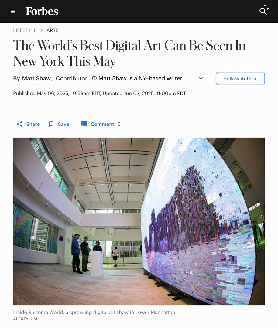 The exhibition was covered by news outlets, such as Forbes + Artnet.