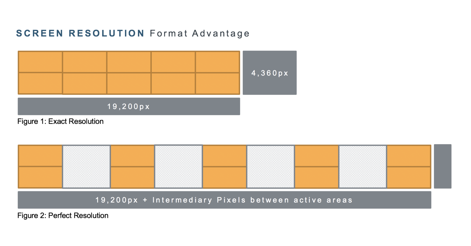 One of the primary challenges of this project was the sheer size to output - a 19,200px by 4,360px pixel grid. This format exceeded unreal engine exporting capabilities, required bespoke videography, and exceeded the processing power of typical mac minis at the time.