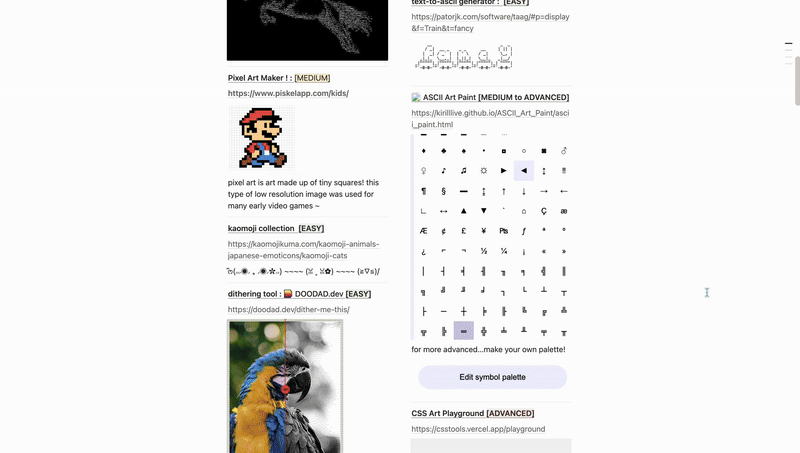 We put together a collection of easy to use tools that allow students to express themselves via photography, hand drawn sketches, and various digital art tools and techniques, such as dithering, ASCII art, and pixel art. For example, students are introduced to the concept of HEX codes by choosing their favorite color. Inaddition to this, we've put together a collection of kid-friendly case studies of digital art (historic and contemporary) that are excitedly explored due to their interactivity and responsiveness.